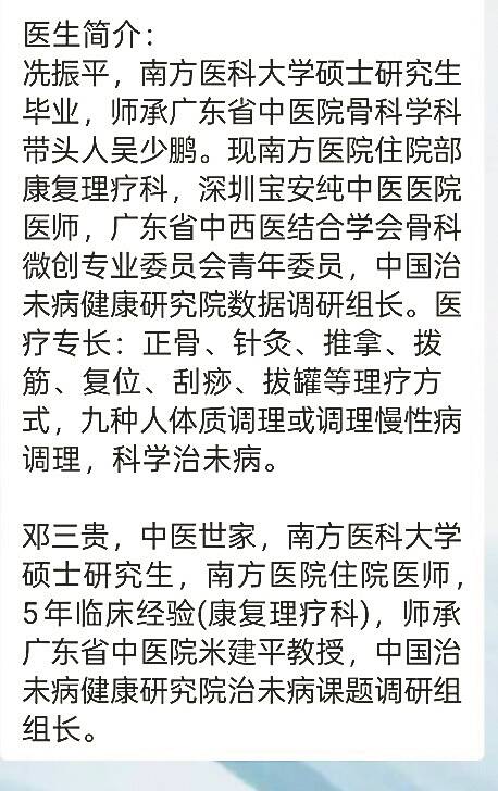 据李先生介绍,自己的父亲是某校的退休教授,三月底,父亲在学校退休人员微信群中看到群通知:“4月1日至3日南方医院康复理疗科医师冼振平和邓三贵前来我校开展义诊活动,为离退休同志提供健康讲座、中医诊脉等服务。”由于通知是学校发布,李先生并未怀疑。