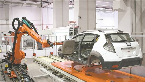 佛山市美的库卡智能制造科技园展示的汽车生产线应用的工业机器人 新华社发