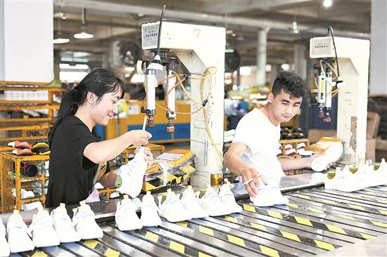 大黄蜂公司工人正在生产鞋子