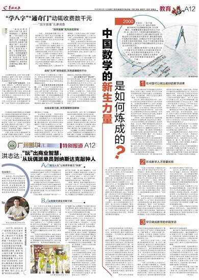 对于中国数学的发展,PMJ主编之一的田刚院士表示:“人才达到一定‘密度’时,会迸发意想不到的火花。我对早日形成数学的中国学派很有信心。”(新华社)