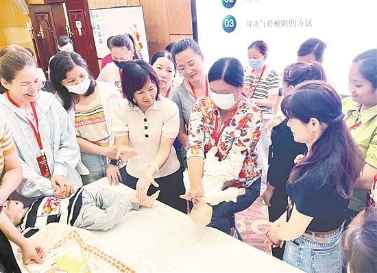 老师指导学员进行幼儿气管异物处理 图/广东福彩