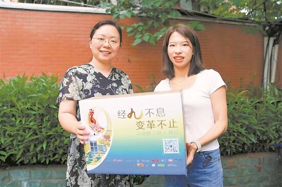 读者黄女士(左)收到羊城派九周年福利礼包 羊城晚报记者 邓鼎园 梁喻 摄