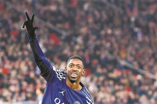 巴黎圣日耳曼主力登贝莱因伤缺阵 新华社发
