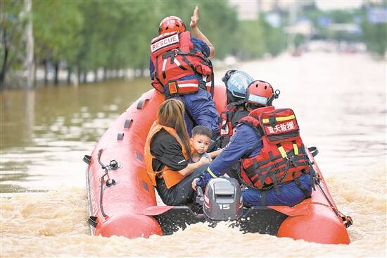 18日,在肇庆怀集,广东蓝天救援队队员转移群众 羊城晚报记者 钟振彬 摄