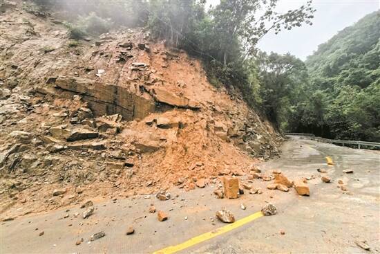 大约20分钟后,伴随着一阵轰隆声,大量泥土和碎石倾泻而下,山坡像被抽掉了筋骨一样垮塌下来,泥土和石块瞬间将道路完全掩埋,扬起的水雾让站在安全距离外的村民愣了神。后经测量,此处塌方总长度超过2公里。