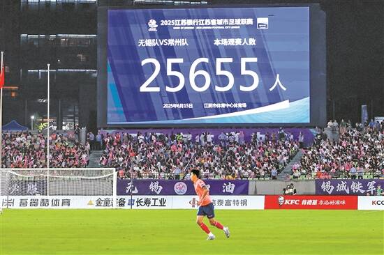 6月15日,2025江苏省城市足球联赛第4轮,无锡主场对常州的比赛是一场“榜尾大战”,依然吸引了25655名观众到场观赛 图/视觉中国