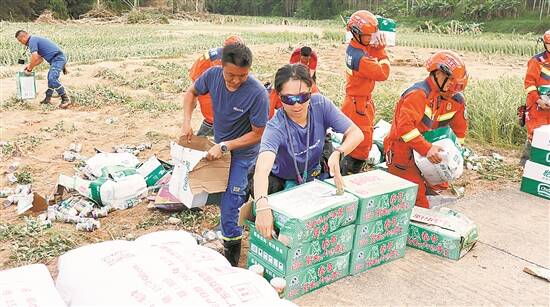 为尽快运送物资,消防救援人员一刻不停,他们立即架设渡河绳索,将物资装入箱子,通过绳索一箱一箱地传递至对岸。“绳索承重有限,一次只能过一箱水和一箱面包。我们就这样来回传递了上百趟,一直到深夜11点。”尹威龙表示,村民们接到物资后,也自发组织搬运、有序分配。