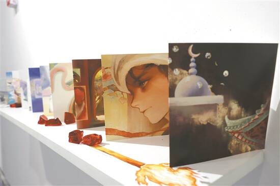 《三间寻蕃记——广州蕃坊探索空间设计》精美的文创设计吸引了现场年轻游客的关注。毕业生杨瑞琳介绍道:“这个作品根据真实史料,讲述了一位年轻的阿拉伯商人阿蒲,结识心仪的中国女子,并智破怀圣寺金鸡悬案的故事。”
