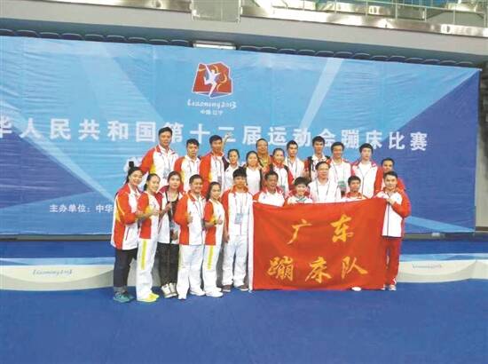 吴晔(后排左一)与广东蹦床队在十二运会上 受访者供图