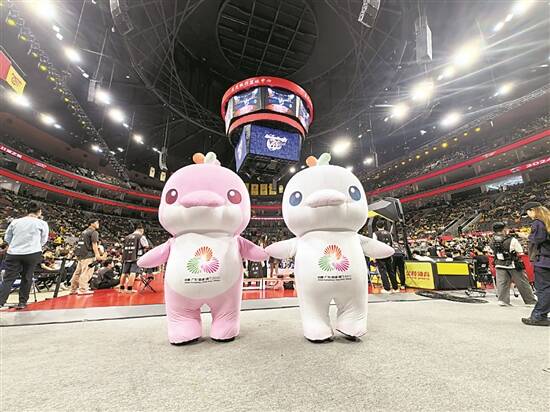 十五运会吉祥物走进东莞篮球中心 莞宣供图