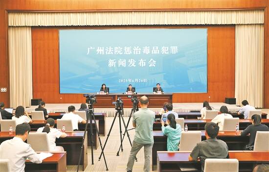 在第38个国际禁毒日来临之际,6月26日,广州市中级人民法院举办全市法院毒品犯罪案件集中宣判活动暨惩治毒品犯罪新闻发布会。市法院党组成员、副院长罗少雄,刑一庭庭长徐兵参加发布会。发布会由宣教处处长谭鹤欣主持。