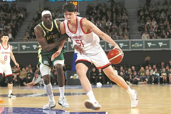 杨瀚森(右)在国家队比赛中 图/视觉中国