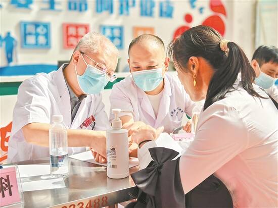 4月17日,孙成晖在医院组织的肿瘤防治义诊活动中耐心解答群众疑问,普及早筛知识。“专家说我的病情稳定,以后在县医院定期治疗就行,不用再跑大城市了。”患者张先生欣喜地说。