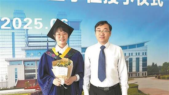 赵旭红(左)和硕士研究生导师朱磊(右)合影留念 图/湖北日报