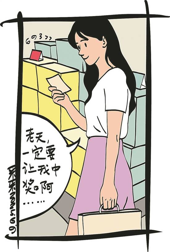慧慧拿着彩票走出了超市,自言自语着:“老天,一定要让我中奖啊,5块就行,那样我才好意思再回来。这么善良的男生我可不想错过了……”