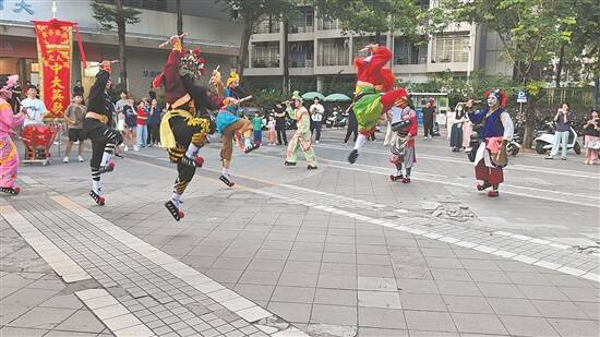 7月8日,一场穿越校园的英歌舞表演,鼓声激昂、舞步铿锵,引来众多学生驻足围观,用手机定格“中华战舞”的壮丽瞬间。这是在华南师范大学(广州校区大学城校园),以“青春探秘 发现揭阳”为主题的揭阳市文旅推介会一幕。有别常规的文旅推介会,揭阳文旅此次专门面向高校青年推出大学生喜欢的专题推介、影像交流、线路发布和非遗演绎等内容,同时启动第二届“粤潮青年”短视频创作行动暨高校学子暑假乐游揭阳活动。专门开展“英歌进校园”主题巡演就是为了调动青年大学生,以年轻化的视角和表达赋能揭阳文旅新传播,吸引更多大学生暑期走进揭阳、畅游揭阳、体验揭阳。