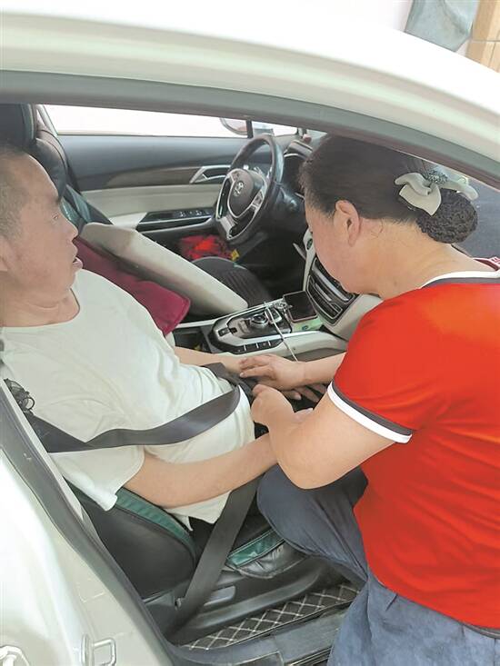 今年3月开始,王杰正式注册成为了网约车司机,而丈夫则成了一直陪伴她的乘客,为了让丈夫坐得舒服些,王杰特地加装了靠枕,还在座位上放了两个抱枕用以支撑手臂。