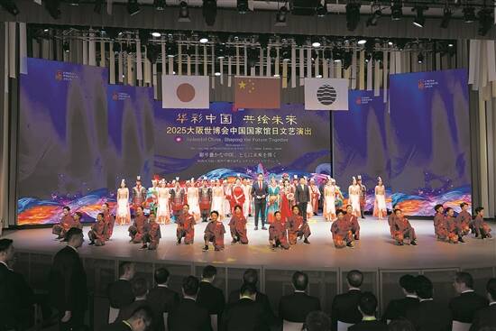 活动期间举办了以“华彩中国·共绘未来”为主题的大型文艺演出,来自陕西省的演出团队以民族歌舞、乐器、戏曲、武术、杂技、街舞等表演形式,在大阪世博会舞台精彩呈现历史悠久、底蕴深厚的中华文化,彰显了中国高质量发展的勃勃生机和中国式现代化的青春活力。与会嘉宾还参观了中国馆。
