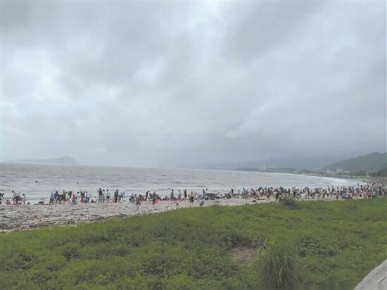 羊城晚报讯 记者李晓雨报道:台风“韦帕”过境后,深汕特别合作区鲘门的海滩成了“网红地”。退潮后的滩涂上,贝类等海鲜密密麻麻,居民们冒雨赶来,人手一个水桶埋头捡拾,不少人收获“爆桶”,直言“捡不完”。