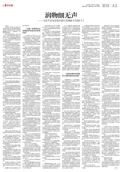 把文化建设摆在更加突出位置,增强先进文化的凝聚力、解放和发展文化生产力、提高社会公共服务能力……习近平始终从文化深处思考浙江改革发展重大问题,为浙江现代化进程注入文化之魂。