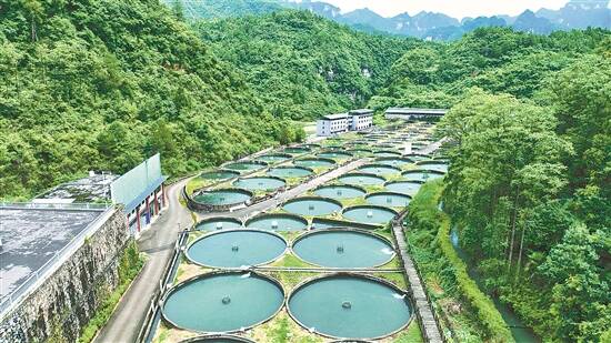 依托丰富的优质冷水资源,生态好、渔业兴。“地下冒出来的山泉水,水质洁净清透、无污染,水体溶氧充沛,养殖鲟鱼幼苗存活率高,鱼儿健壮,肉质干净,紧实弹牙。”贵州鼎基石寻龙科技有限公司副总经理王蔚铭介绍说,好山出好水,好水养好鱼,借力东西部协作资金的投入建设,公司目前已在铜仁市江口、印江、德江等地建有鲟鱼繁养殖基地和鲟鱼苗种繁育基地共9个,以及鱼子酱及预制菜综合加工厂1个,正研发鱼丸、鱼肠等鲟鱼深加工产品,形成“养殖规模化、加工链条化、品牌高端化”的发展格局。