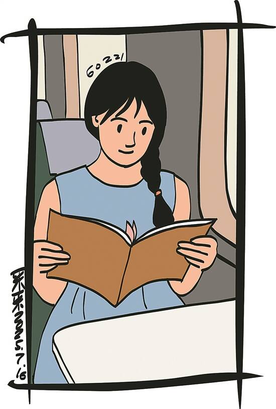 第二天的站台上,火车快开了。汪志强把一本文学杂志递到姑娘手里:“路上看书解闷……”