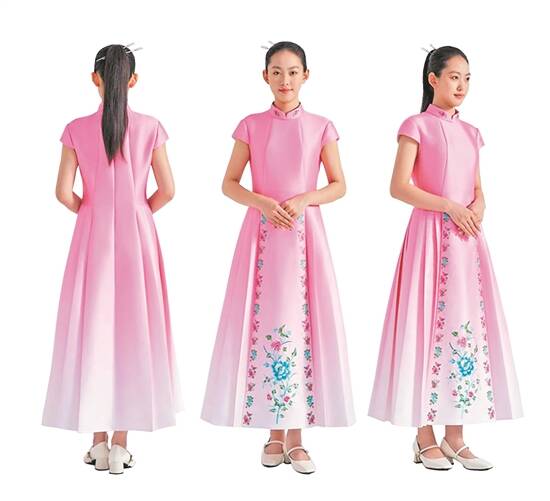 保留传统马面裙的裙门廓形,裙身“一枝独秀”图案灵感源于粤绣