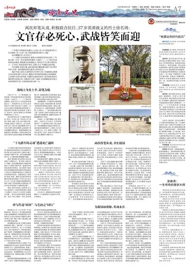 值此中国人民抗日战争胜利80周年之际,羊城晚报记者通过采访徐名鸿烈士的长孙、暨南大学体育学院原院长徐泽教授,以及梅州当地文史专家,并翻阅大量相关史料,追寻徐名鸿这位曾经两次投笔从戎,为推动抗日统一战线、为民族解放舍生取义的岭南英烈行迹,为读者细述其光辉一生。