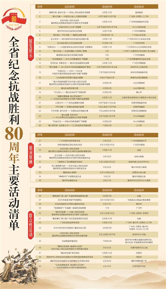 全省纪念抗战胜利80周年主要活动清单