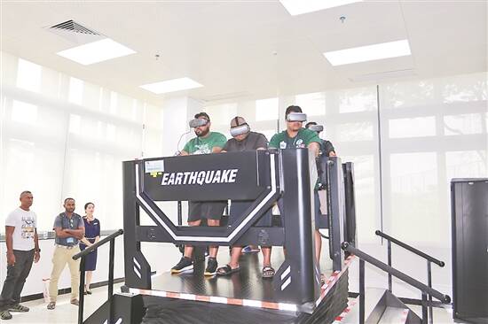移步台风体验室,8级模拟风力瞬间掀起衣角,模拟雷电噼啪作响,地面轻微晃动带来的眩晕感让现场嘉宾不禁抓紧扶手。“这和台风登陆时的感觉太像了!”曾亲历灾害的嘉宾代表感慨道。