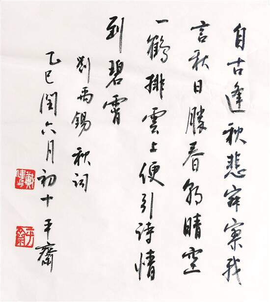 我个人很喜欢刘禹锡的诗作,他的诗作往往能够给予我们一种昂扬向上的力量,平日我也会抄写他的诗作。今天来了很多小朋友,我想说:吟诵固然重要,但抄写同样不可或缺。许多孩子能够熟练背诵诗歌,却往往忽视了书写的重要性。实际上,抄写不仅能加深记忆,更能帮助我们细细品味诗歌的意境与韵味。