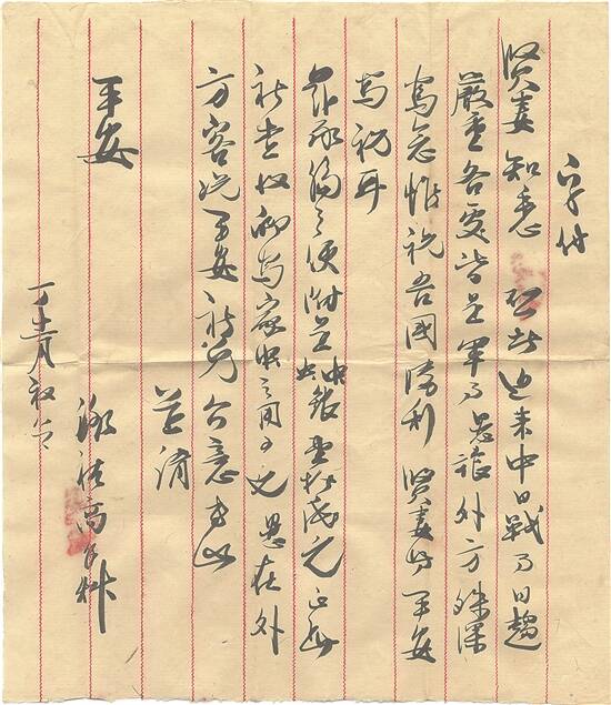 寄批者因为远在海外,在跨国交流中也不时会传递一些真假难辨但关乎时事的讯息。如1937年11月,上海沦陷前夕,旅居泰国的李木盛在给潮安母亲的信中,传达的消息是“如中日战争,将来中国必战胜□。日军这次在上海并北头,即太原山西各省所战者,皆是日军大败”(《中国必胜》)。同年12月,南京沦陷后,李木盛在给母亲的信中,仍然强调“此次日本军被中国军杀得大败,死亡甚多”(《防备饥荒》)。海外乡亲担心家中老人耳目闭塞,乡下地方的消息也不灵通,常常会在批信中顺便提及从报纸、电台和日常交往中获悉的时事新闻,战火临近时这类交流自然也更多一些。李木盛的文字,虽然具体内容不全属实,但希望中国军队打赢的愿望却是发自肺腑,海外侨胞相信中国终将胜利的乐观情绪也是真实可感的。