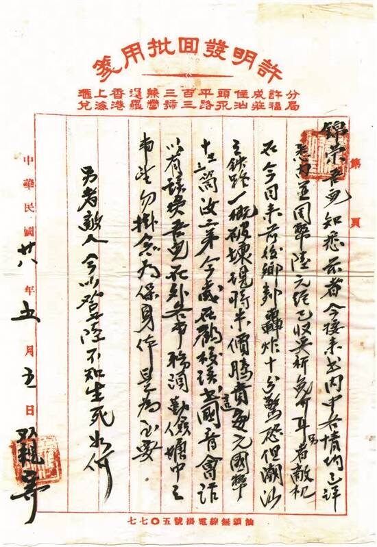 近九十年光阴荏苒,如今再翻阅这些珍贵文书,仍然难免锥心的隐痛,对苦难岁月中海内外前辈乡亲的境遇与心境,多一份敬重与悲悯交织的感佩。