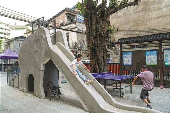 这座位于广州海珠区郭墩街社区的大象滑梯在本地网络社群中有一定的知名度。得益于“寻找城市最后的大象滑梯”话题高热度,很多年轻人按图索骥,打卡仅存的大象滑梯。