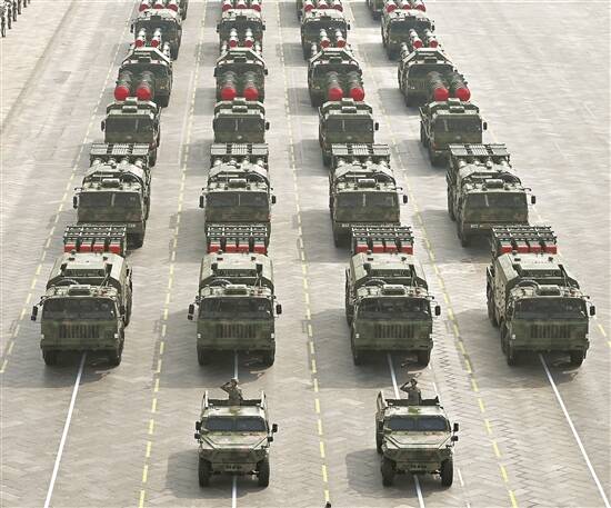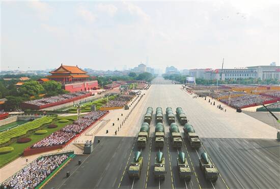 3日上午,核导弹第二方队通过天安门广场,光荣接受检阅。