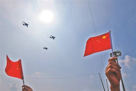 3日上午,运输机梯队飞过天安门广场上空,接受祖国和人民检阅。