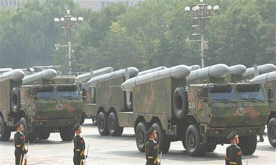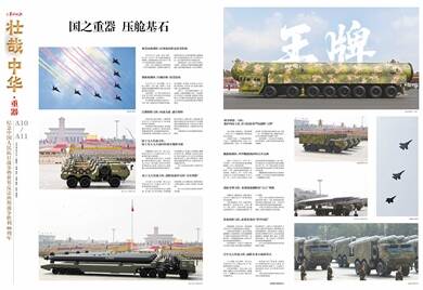 受阅的“惊雷-1”空基远程导弹、“巨浪-3”潜射洲际导弹、“东风-61”陆基洲际导弹、“东风-31”新型陆基洲际导弹,首次集中展示我军陆、海、空基“三位一体”战略核力量,是维护国家主权、捍卫民族尊严的战略“王牌”。