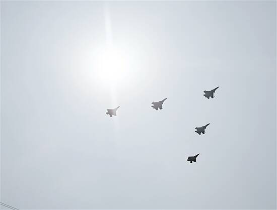 由歼-15DH、歼-15DT、歼-35和歼-15T四型战机组成的舰载机梯队,3日上午接受检阅。