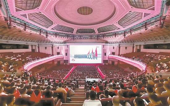 1945年9月16日10时,广东地区侵华日军投降签字仪式在广州中山纪念堂举行。作为广东地区日军签字投降的见证地,中山纪念堂在抗战胜利史上具有特殊且重要的意义。因此,广州市总工会联合广州市中山纪念堂管理中心等组织广州各界1800余名代表在此共同观看纪念中国人民抗日战争暨世界反法西斯战争胜利80周年大会直播。