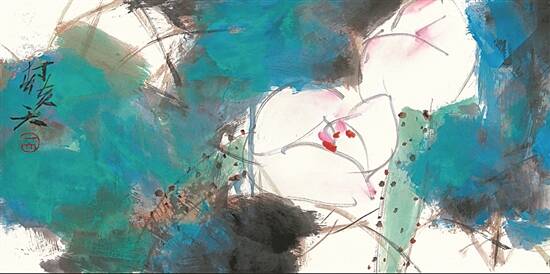 荷(国画) □陈天