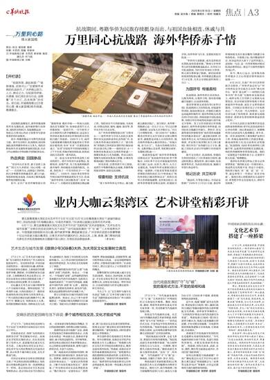 9月17日,第五届粤港澳大湾区文化艺术节开启“艺韵和鸣”艺术讲堂板块。“艺术生态与城市发展”“交响乐的历史回响与当下诉说”“当代戏曲发展的‘守’与‘破’”三大专场率先开讲。中国国家话剧院院长田沁鑫、剧作家罗怀臻、舞蹈家黄豆豆、广州交响乐团团长陈擎等数十位业内名家大咖云集湾区,分享艺术创作的真知灼见;来自北京、上海、香港、澳门等地的国内多位艺术名流围绕相关主题展开深入探讨,令湾区民众获益良多。 (黄宙辉)