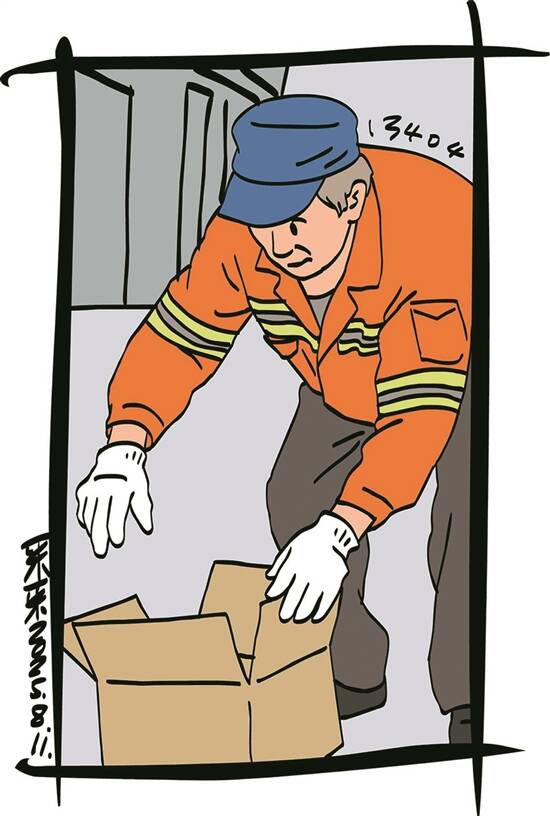 在这条街上干了20多年,老徐对沿街的一砖一瓦、一家一店都熟稔于心。他干活认真,待人热情,不少店铺的老板都认识他,渐渐养成了习惯——把用完的废纸箱留给他。每天收工后,老徐会推着三轮车挨个收了那些店铺放在门口的废纸箱,再送到回收站换些零钱。