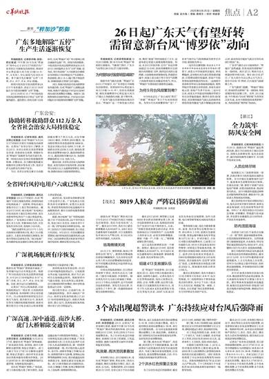 羊城晚报讯 记者王丹阳,通讯员粤交集宣、岳路建报道:9月24日17时,随着台风“桦加沙”影响减弱,广深高速东莞段、深圳段,南沙大桥解除交通管制,恢复正常通行。虎门大桥于当日17时10分解除交通管制,恢复正常通行,南沙停车区及加油站的基本服务功能同步恢复。24日20时30分,深中通道解除临时交通管制,全线恢复双向通行。