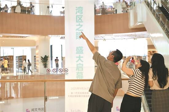 “湾区之眼”开业当日人气爆棚。记者在现场看到,书城内部空间开阔,采用开敞式设计,融合自然生态与东方文化传统,为读者带来沉浸式文化体验。由国际先锋艺术团队打造的主题阅读空间,汇聚近10万种、超30万册精选好书。书城顶层超2万平方米的星空花园连通南北区,未来将举办露天电影、星空音乐会等活动。同时,这里还落户了一批特色文化品牌首店、创新店。