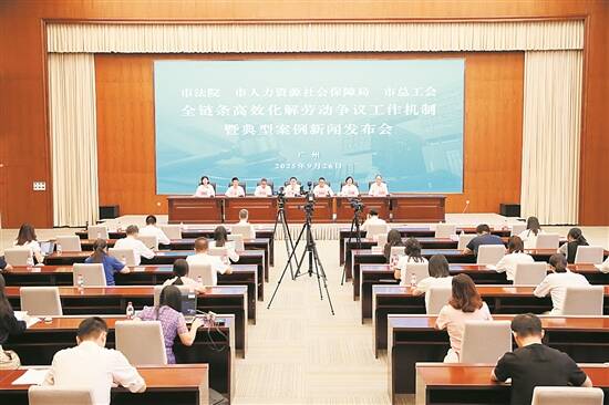 凝聚合力护权益!2025年9月26日下午,广州市中级人民法院、广州市人力资源和社会保障局、广州市总工会联合举办新闻发布会,共同签署《关于联动高效化解劳动争议案件(纠纷)的工作意见》(以下简称《联动工作意见》),标志着广州“法院+人社+工会”劳动争议多元化解联动机制正式建立并运行。
