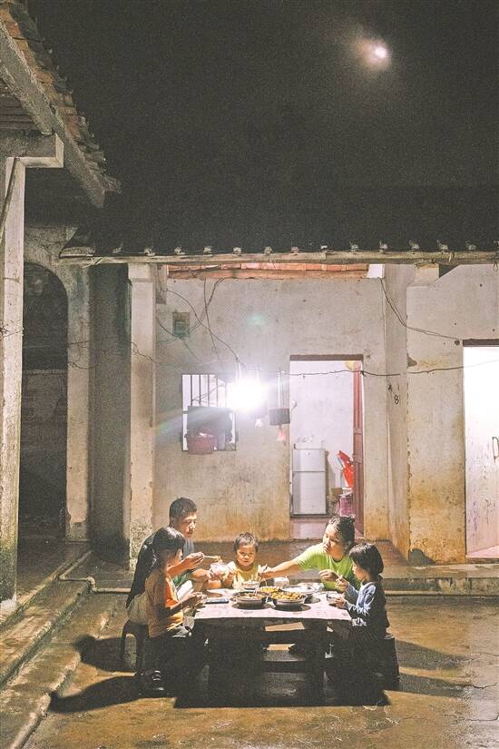 中秋的夜幕渐渐落下,一家人把破败的院子简单收拾出来。原本想买灯笼应景,但台风过后无处可买。看着女儿们期待的眼神,丈夫王玉平灵机一动,翻出攒下的利是封、一段红绳和几双一次性筷子,坐在灯下,仔细地裁剪、捆扎。不一会儿,3个手工灯笼便做成了。女儿们惊喜地围上来,小手提着自己的“专属”灯笼,脸上露出笑容。