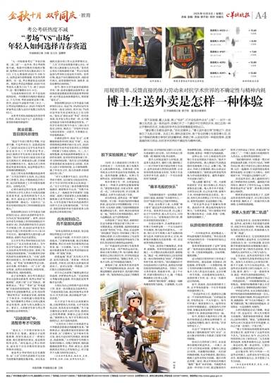 没有复杂社交、没有漫长精神内耗,送外卖,成为博士生们重建生活秩序、对抗学术失重感的一种实践,更激发他们以各自的方式,积极探索人生的“第二轨道”。
