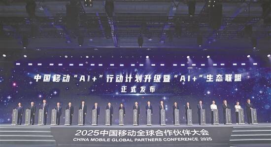 10月11日,在2025中国移动全球合作伙伴大会主论坛上,中国移动正式发布“AI+”行动计划升级暨“AI+”生态联盟。作为央企AI“国家队”,该计划的发布标志着中国移动将全面促进经济社会智能化水平提升,带动形成千亿级市场规模的产业新生态。