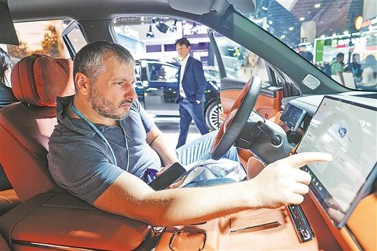 在这场全球规模的贸易盛会上,“中国智造”锋芒毕露。记者现场看到,新能源汽车与智慧出行展区备受瞩目,外国客商纷至沓来,大部分展台待客能力“高饱和”,采购商们要排队等待试车和询价交流。