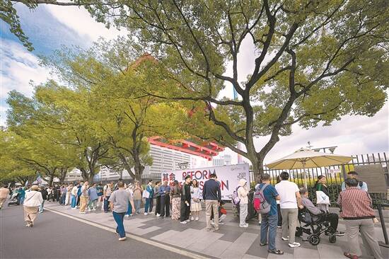 大批观众在上海美术馆(中华艺术宫)外排队入场观展 羊城晚报记者 钟振彬 邓鼎园 通讯员 植凯鹏 摄